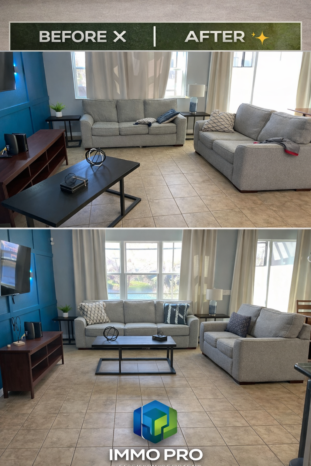 Resultados impecables que demuestran nuestro compromiso con la excelencia en cada limpieza antes y después de IMMO PRO.